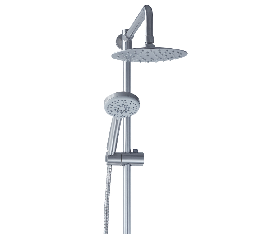 沐浴柱由不銹鋼整體壓鑄成型,簡潔時尚、結實耐用。上下呼應的斜角設計,讓您的浴室更具美感,又避免了金屬銳角對人體的意外碰撞,,彰顯人性關懷。