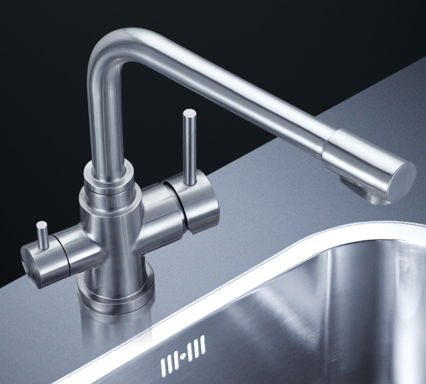 阿發水槽立邊采用國際先進的10-25°小R角一次成型拉伸技術,更具立體感與時尚潮流,亦能充分擴展水槽利用空間;一次成型拉伸技術,杜絕了焊接工藝易產生的水槽生銹,脫焊事故,充分保障水槽50年以上的使用壽命