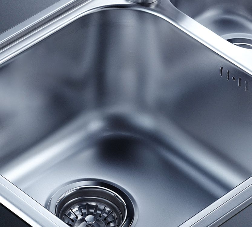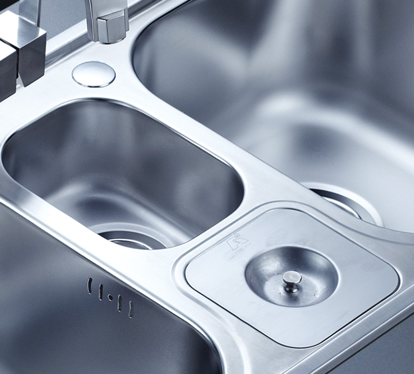 阿發(fā)水槽整體經(jīng)拉絲處理,質(zhì)地更加光滑,視覺更加柔和。能有效抵擋異物撞擊,刮傷及磨損,防止油污沾染,常用常新;柔和的光澤令水槽平添高雅氣質(zhì),更能避免鏡面材質(zhì)反射的光污染
