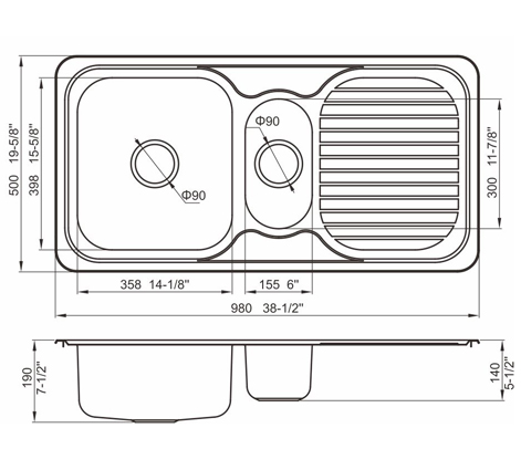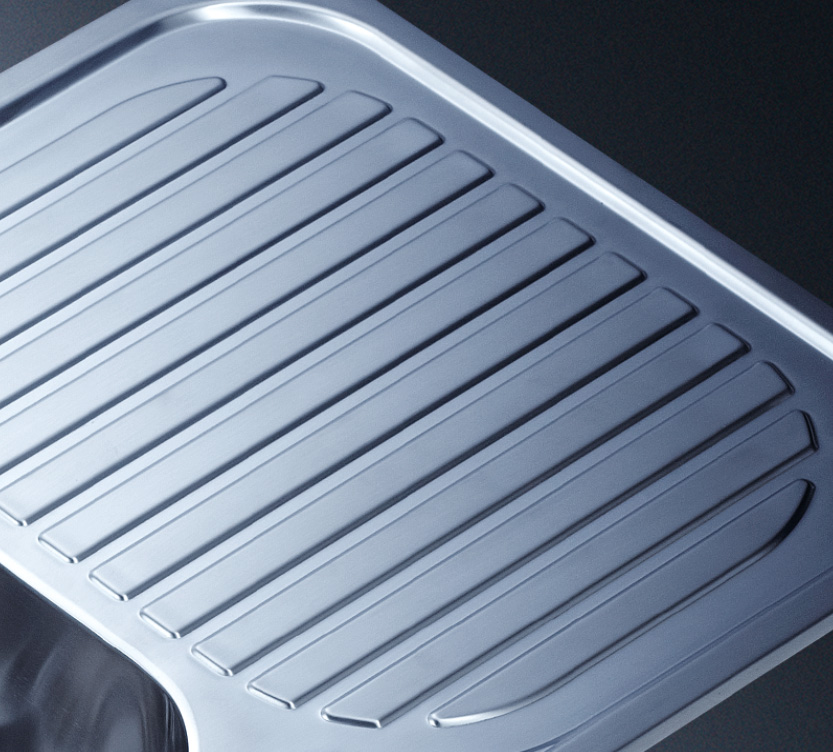 槽底采用斜面壓痕,四輻導(dǎo)流槽設(shè)計(jì),與平面壓痕和無(wú)痕水槽相比,導(dǎo)水更為流暢,下水更迅速,能有效防止積水,消除沉淀物