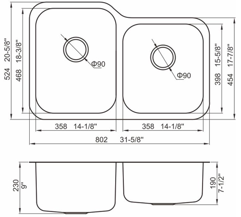 槽底采用斜面壓痕,四輻導流槽設計,與平面壓痕和無痕水槽相比,導水更為流暢,下水更迅速,能有效防止積水,消除沉淀物