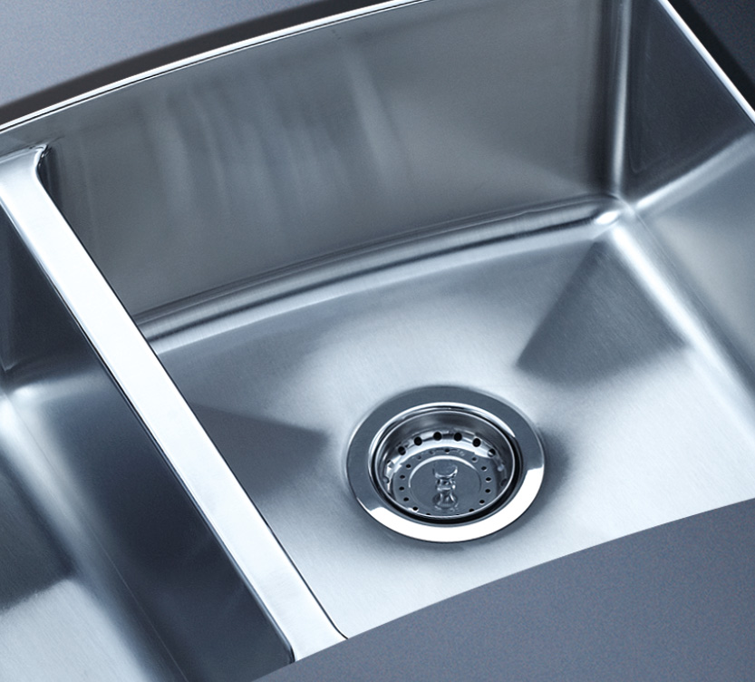 阿發水槽整體經拉絲處理,質地更加光滑,視覺更加柔和。能有效抵擋異物撞擊,刮傷及磨損,防止油污沾染,常用常新;柔和的光澤令水槽平添高雅氣質,更能避免鏡面材質反射的光污染